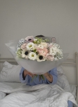 На фото букет з у розмірі М. Ви маєте можливість обрати бажаний розмір. Букет може мати відмінності на 10-15%, в залежності від сезона. Перед відправкою наші флористи надішлють вам фото для підтвердження замовлення. ⠀ Доставка по Києву здійснюється день в день або в обраний вами день нашим кур'єром. ♡